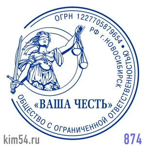 Печать юридической компании 874. Печать юриста. Срочное изготовление печати за 15 минут, если требуется укажите в заказе. Стандартный срок изготовления от 2-х до 4-х часов. Сообщите нам, если требуется согласование макета печати. После оформления заказ...
