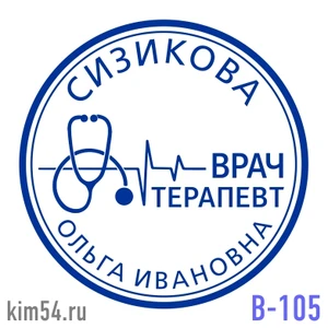 Печать врача-терапевта В-105 Срочное изготовление печати врача 15 минут. Стандартный срок изготовления печати врача - 2 часа. При заказе печати можно указать специализацию врача (терапевт, хирург, дерматолог, стоматолог, офтальмолог и др.), а также уче...