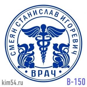 Печать врача с Кадуцеем и узорами В-150 Срочное изготовление печати врача 15 минут. Стандартный срок изготовления печати врача - 2 часа. Печать врача изготавливается диаметром - 25-30 мм. Оптимальный размер врачебной печати составляет 29 мм. Возможно изго