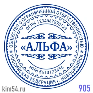 Заказать печать организации с узором и рамкой звездой № 905. Срочное изготовление печати - 15 минут, если требуется сообщите. Стандартный срок изготовления печати - 2 часа. Если требуется согласование макета печати - сообщите. Диаметр печати организации -