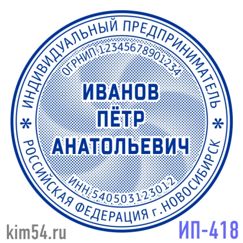 Заказать печать предпринимателя онлайн, печать самозанятого гражданина, печать КФХ. Для оформления заказа отправьте шаблон печати в корзину и заполните форму заказа. Срок изготовления печати ИП от 2-х до 4-х часов. Срочное изготовление печати ИП - 15 минут. Для заказа печати документы не требуются.